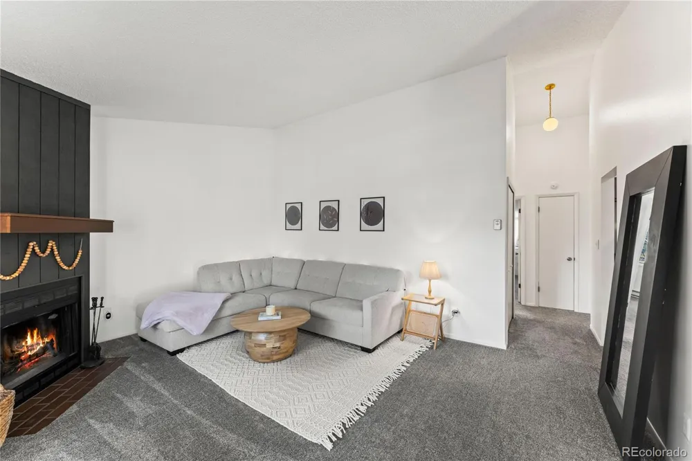 This charming condo with stunning Pikes Peak views is full of potential and ready to be transformed into a truly special retreat. Recently spruced up with fresh paint, the home feels bright, clean, and welcoming from the moment you step inside. The cozy living room features a wood-burning fireplace and flows seamlessly into a generously sized dining area, creating a warm and inviting space to relax or entertain. Just off the dining area is an efficient galley kitchen offering ample counter space, abundant cabinetry, and a pantry for added storage. The spacious primary bedroom includes a wall of closet storage and a private 3/4 bath, while the second bedroom offers a large walk-in closet and easy access to the nearby full hall bath. A conveniently located laundry closet sits just outside both bedrooms. Recent updates include newer plush carpet and a water heater, adding immediate value and comfort. Step out onto the inviting deck to enjoy sweeping views of Pikes Peak and overlook the beautifully maintained common courtyard, complete with mature aspens, grills, and picnic tables. To top it off, the detached garage for this unit is one of the larger garages in the complex—an added bonus rarely found. This condo is a fantastic opportunity to add your personal touch and create a mountain-inspired home with incredible views.